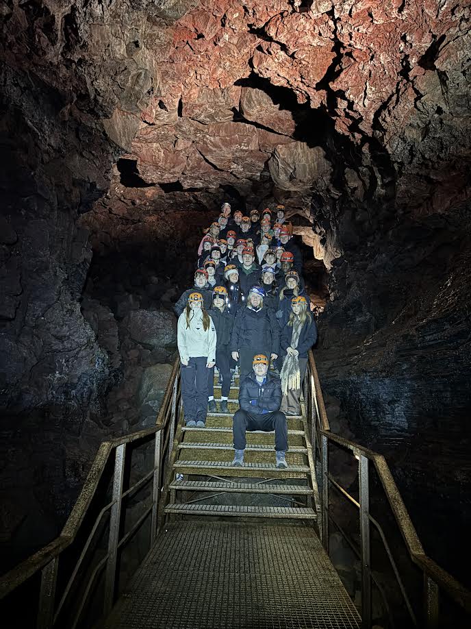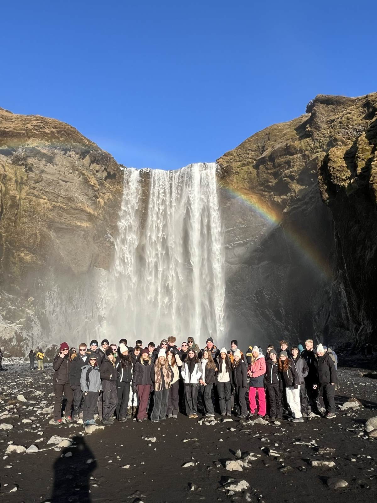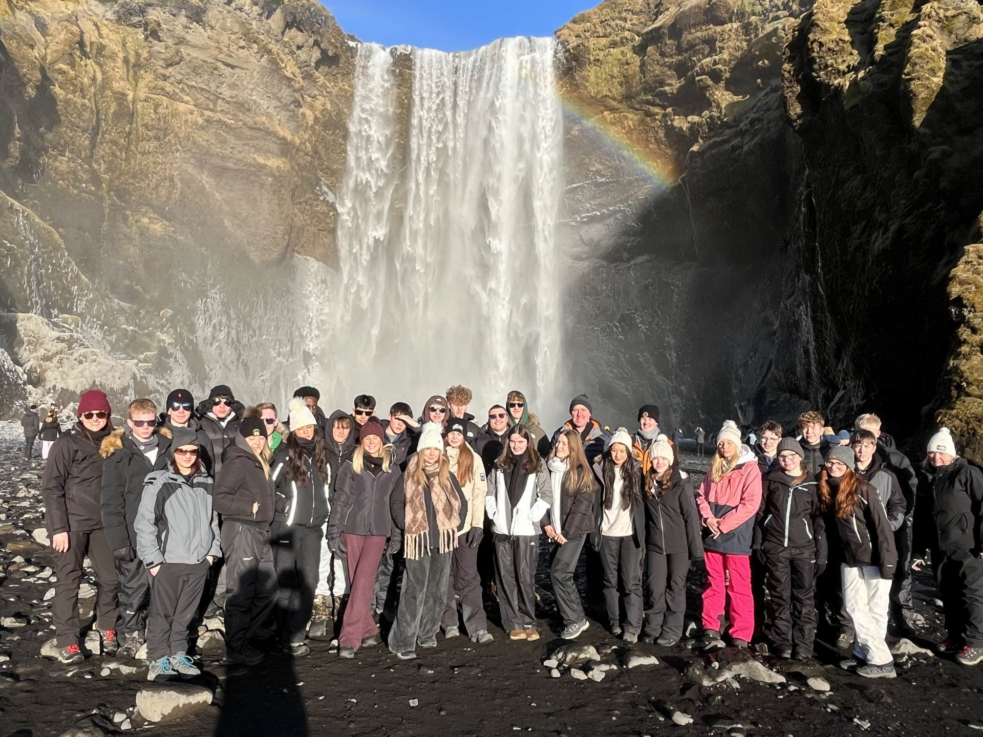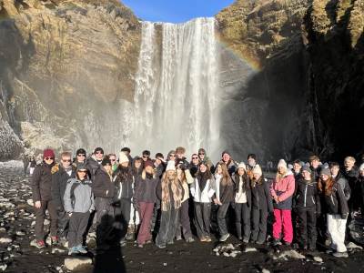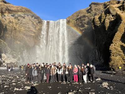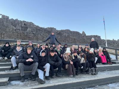 Thirty Year 11 GCSE Geography pupils spent 5 days exploring the southern part of Iceland just before February half term. Some highlights included visiting several incredible waterfalls such as Gulfoss, the bubbling hot water area of Geysir with the highly active Strokkur Geyser which erupts 20-30m in the air every 10-15 minutes, the black sandy beach at Reynisfjara, walking on a glacier with the aid of ice picks and crampons, a dip in the geothermal spa at the Blue Lagoon, as well as a walking tour of Reykjavík. However, the biggest & best highlight was seeing the Northern Lights each evening which was awe inspiring.